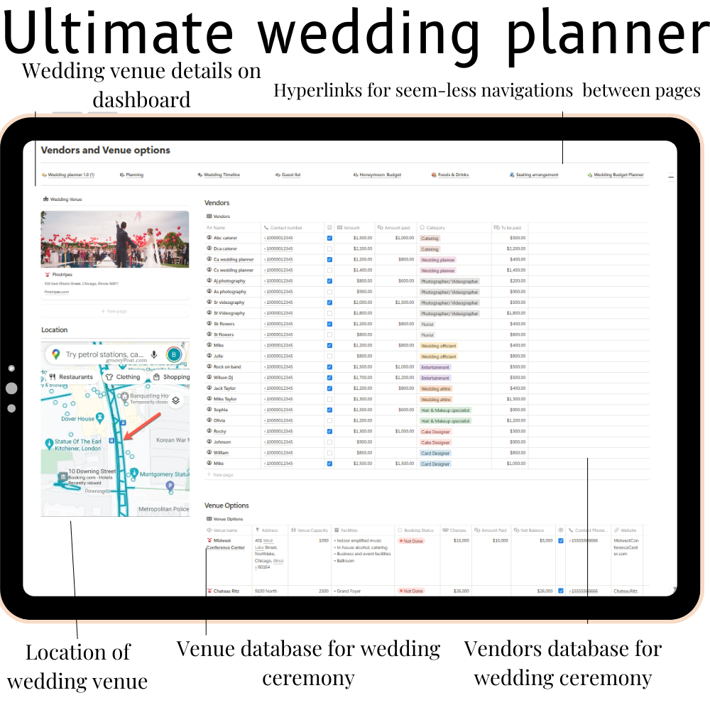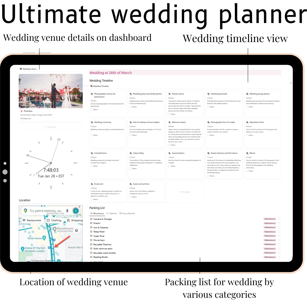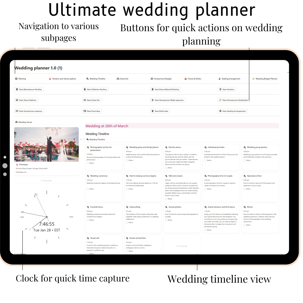 Wedding Planner Notion Template, Notion Wedding Timeline Calendar