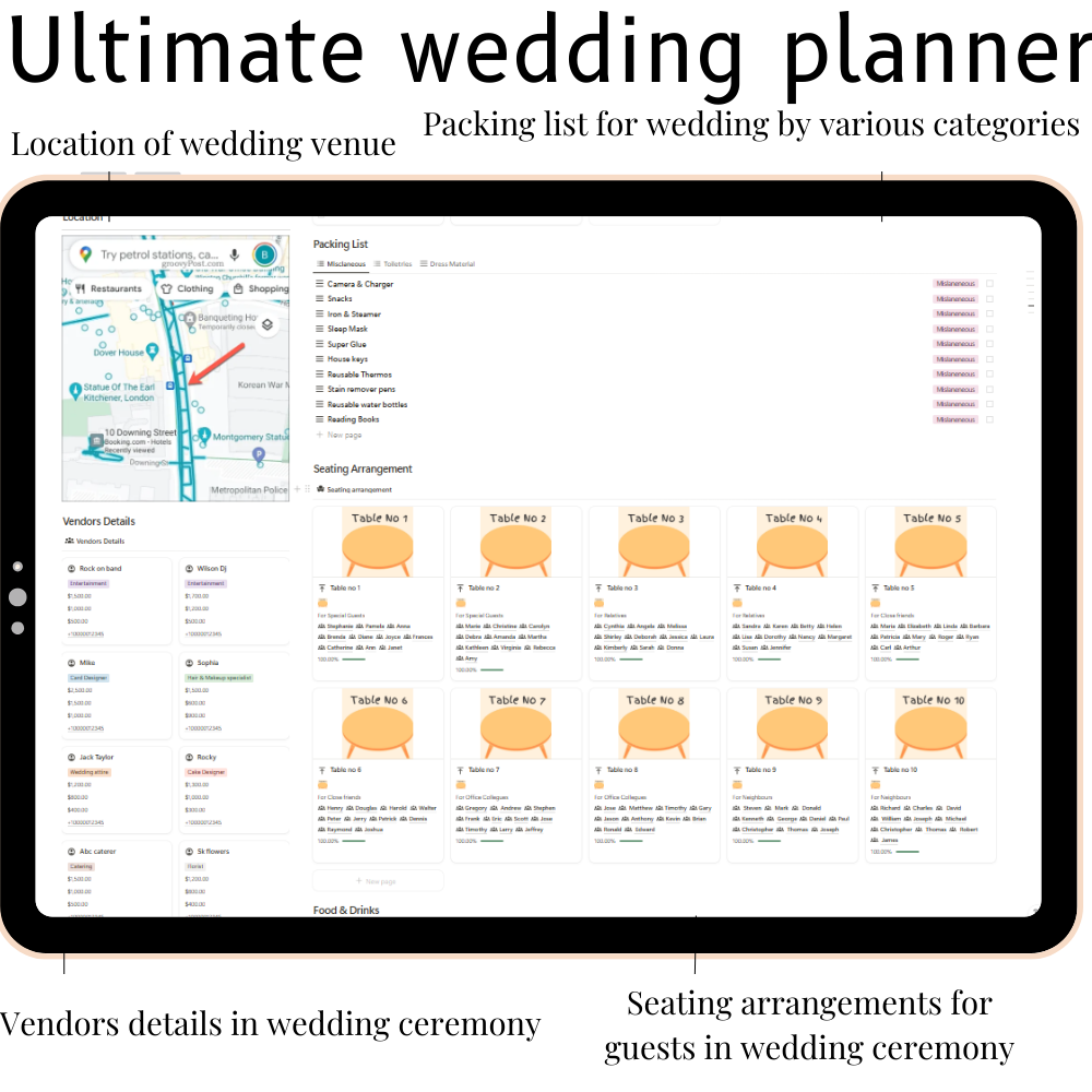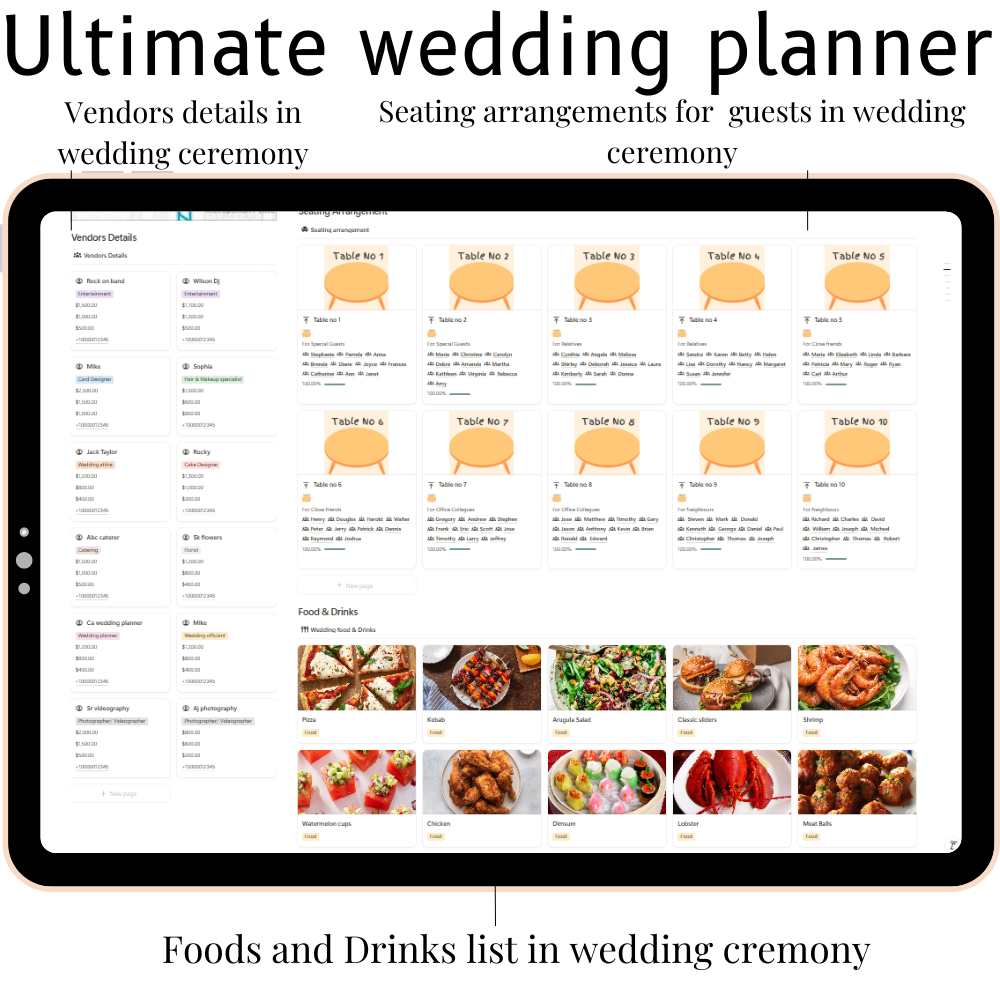 Our Wedding Notion Planner Template is the ultimate organizational tool for couples planning their big day. It offers a comprehensive layout to manage every detail, from budgeting and guest lists to vendor tracking and timelines. With customizable sections and a sleek, user-friendly design, this template ensures no detail is overlooked, helping you stay stress-free and on track as you plan your dream wedding. Perfect for modern couples looking to keep everything in one place.